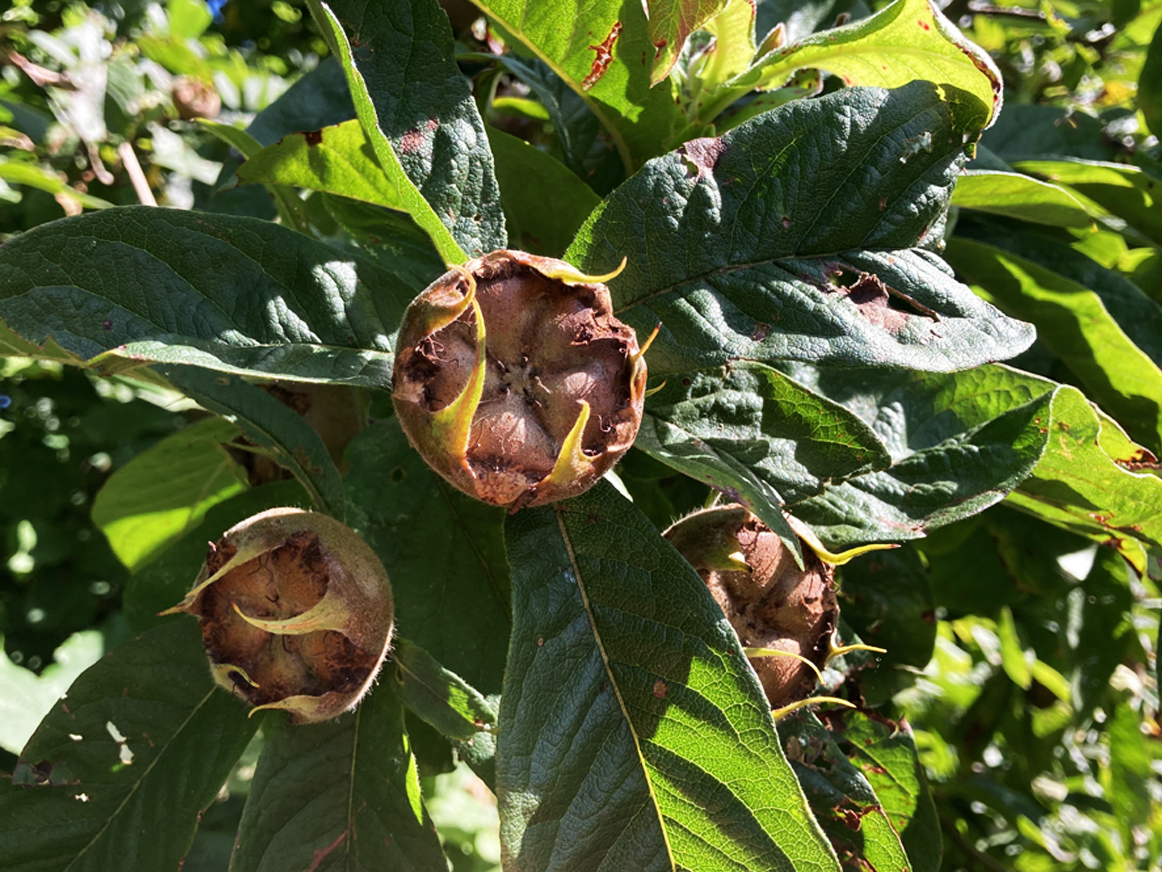 Een glooiend paadje leidt door Het Vogelbosje langs een lange muur van snoeihout. Deze zogenaamde takkenril houdt de koude noordenwind tegen, waardoor de laaggelegen zonzijde van het bosje relatief warm en beschut is. Hier profiteren onder andere de mispelbomen van, een zuidelijke soort waarvan de vruchten worden gebruikt voor gelei en likeur. Pas wanneer ze zijn begonnen met fermenteren, zijn de vruchten bruikbaar. Vandaar de uitdrukking ‘Zo rot als een mispel’.