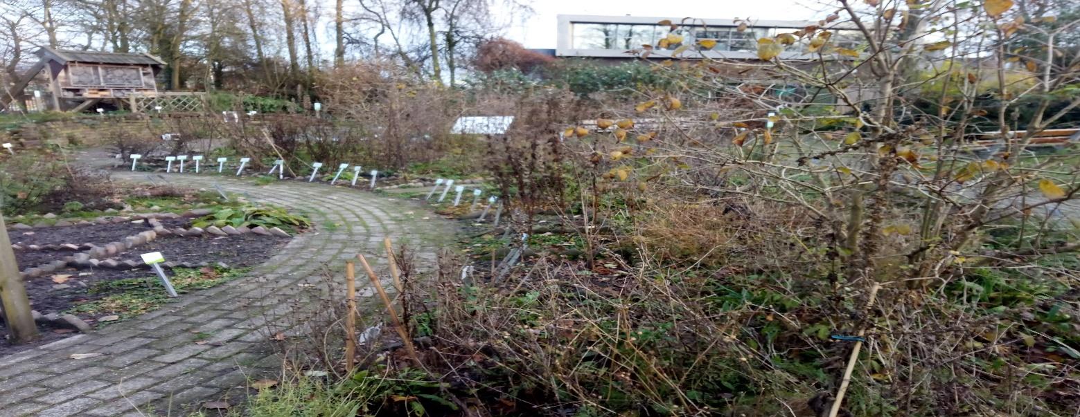 Een (ander) deel van de heemplanten is overigens ook te bewonderen in de aangrenzende natuurtuin. Daar zijn in 2024 door de vrijwilligers vakken ontworpen in een cirkel, als in een kloostertuin. Hierin staan medicinale planten, eetbare planten en planten voor industrieel gebruik. Denk aan de grote kaardenbol die vroeger in de wolindustrie werd gebruikt en aan planten waarvan verfstoffen kunnen worden gemaakt.