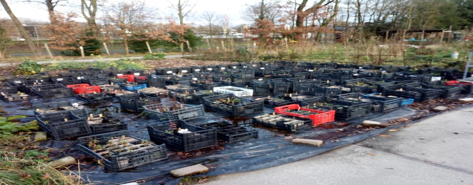 Planten die nog niet groot genoeg zijn en bijvoorbeeld zeldzame soorten waarvan er niet zoveel voorradig zijn, staan elders op het terrein als voorraad opgeslagen.