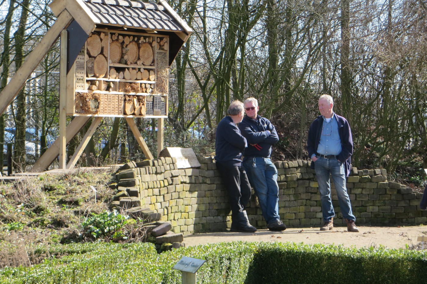 In de tuin zijn verschillende thema’s te vinden: De moerasvijver met waterbeestjes/waterplanten, een houtmijt, een stobbenpad, bijen, vlinders, vogels, kruiden, geurplanten, heemplanten, waardplanten en een insectenmuur.